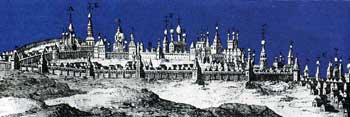 Расшифрованный недавно рисунок англичанина Дженкинсона, запечатлевший Казань в 1558 году, позволяет воспроизвести план средневековой крепости, составить представление о чертах ее архитектуры. Это была мощная дерево-каменная цитадель: замкнутое кольцо стен и башен, пересеченное дополнительными рвами и стенами с башнями. Крепость предстает перед нами весьма сложным фортификационным сооружением, состоящим из верхней части, огражденной по периметру холма стеной с башнями, и нижней – с дополнительной стеной, отгораживающей северо-восточный нижний уровень холма. Верхняя же часть крепости, в свою очередь, пересекалась дополнительными укреплениями, одно из которых, - Тезицкий ров - делило ее пополам, а другое отсекало южную часть крепости в сотне метров от главной проездной башни. По верхней кромке холма уже с XII века до рва, а в XIV-XVI веках и далее шла белокаменная стена, хорошо видная на рисунке Витсена и планах Кремля XVII-XVIII веков. Ее южный участок, скорее всего, был накрыт поздней русской стеной, но северная часть обнаруживается на всем протяжении как при археологических исследованиях, так и над поверхностью земли.