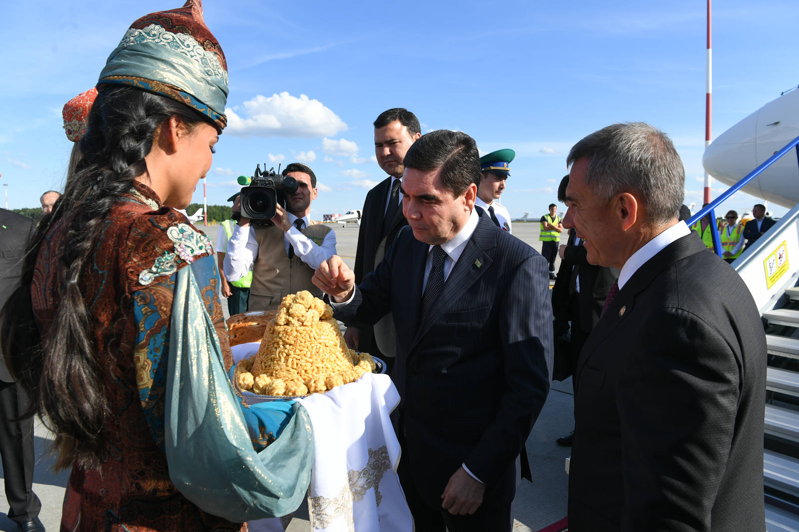 Tatarstan President Rustam Minnikhanov is meeting President of the Republic of Turkmenistan Gurbanguly Berdymukhamedov at the Kazan International Airport, who has arrived in Kazan. 06.07.2018
