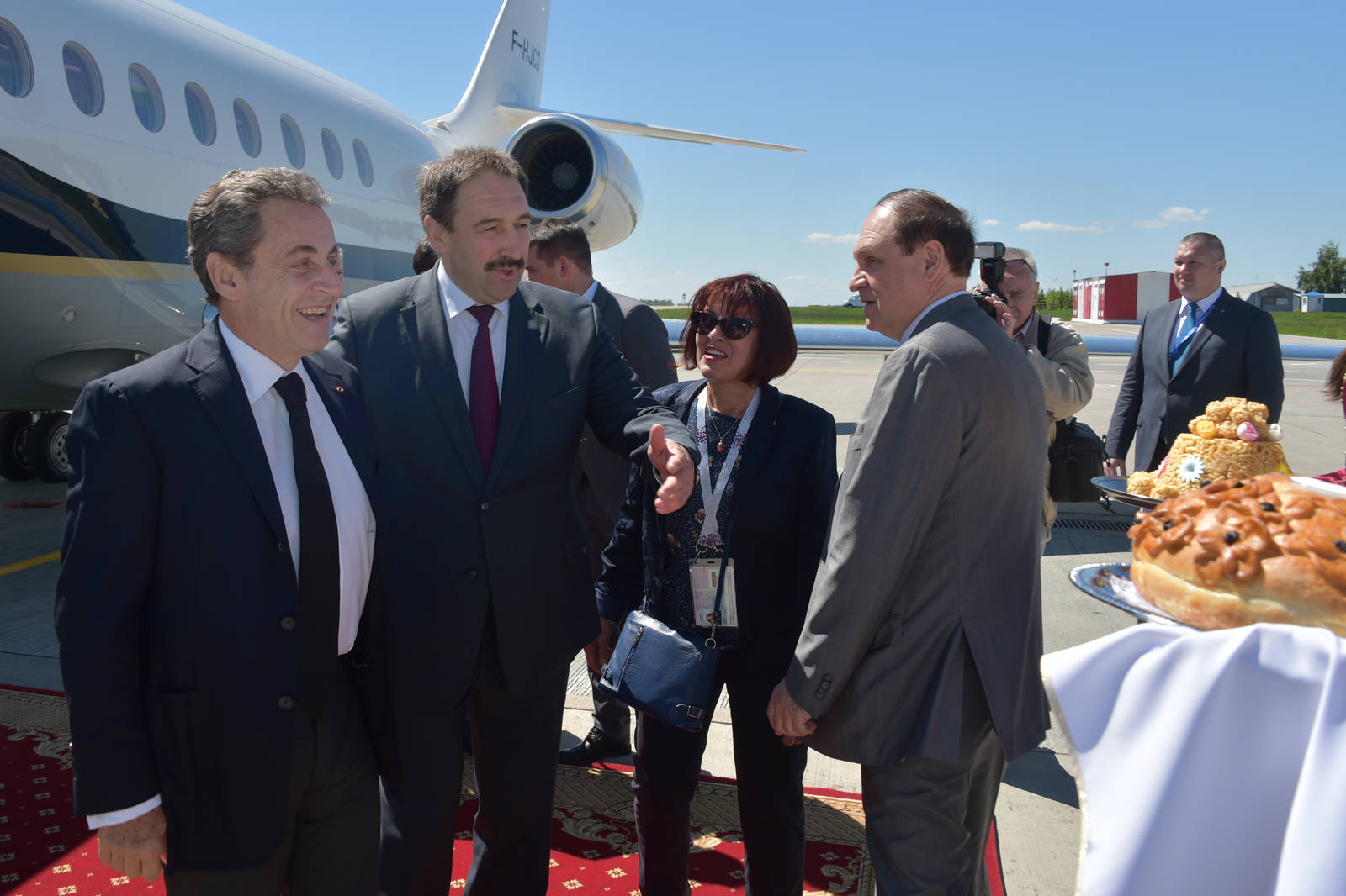 Tatarstan Prime Minister Aleksey Pesoshin is meeting Nicolas Sarkozy at the Kazan International Airport, who has arrived in Tatarstan 16.06.2018