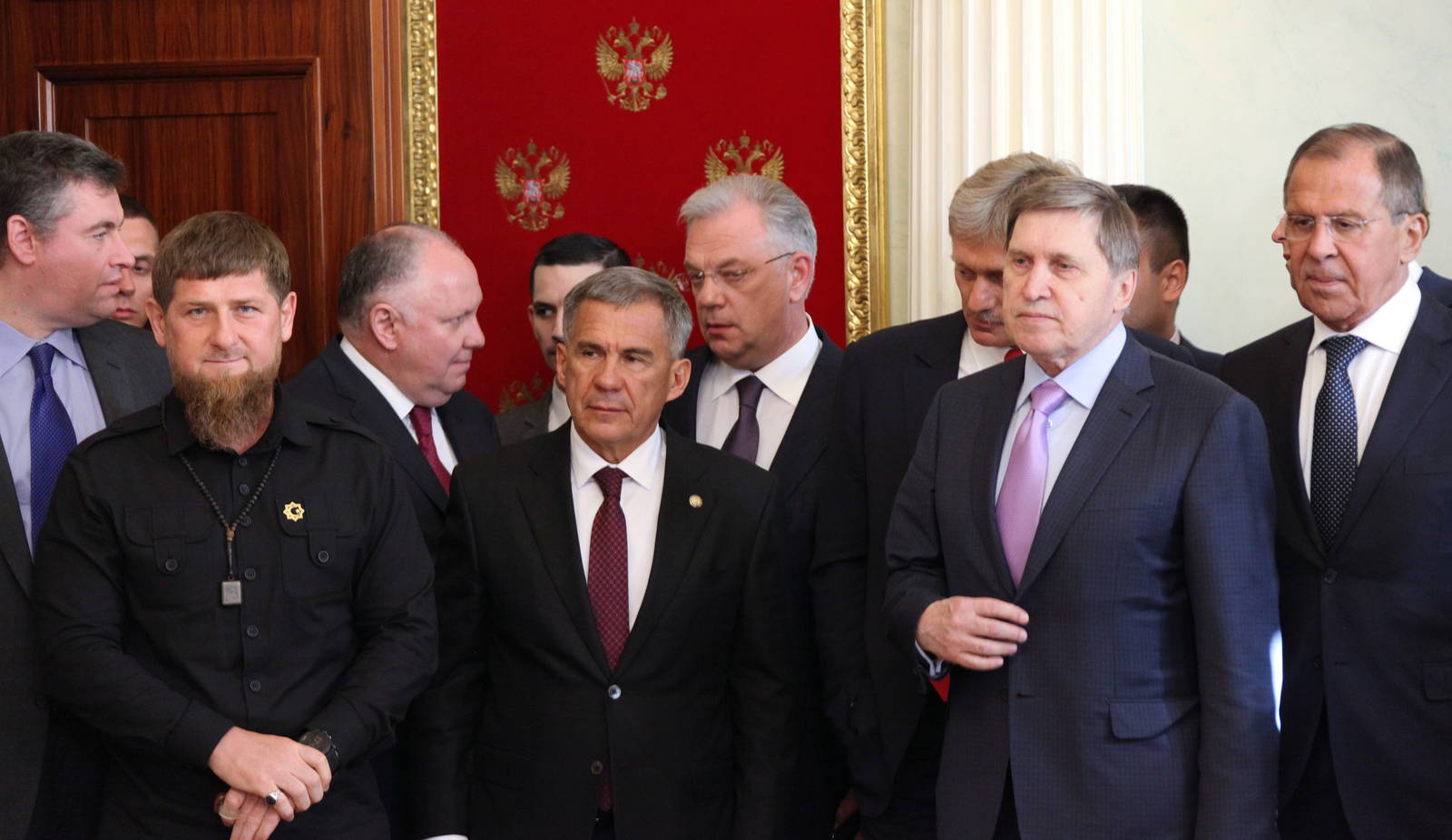 Meeting of Russian President Vladimir Putin with Crown Prince of Abu Dhabi Sheikh Mohammed bin Zayed Al Nahyan. Tatarstan President Rustam Minnikhanov is taking part. 01.06.2018