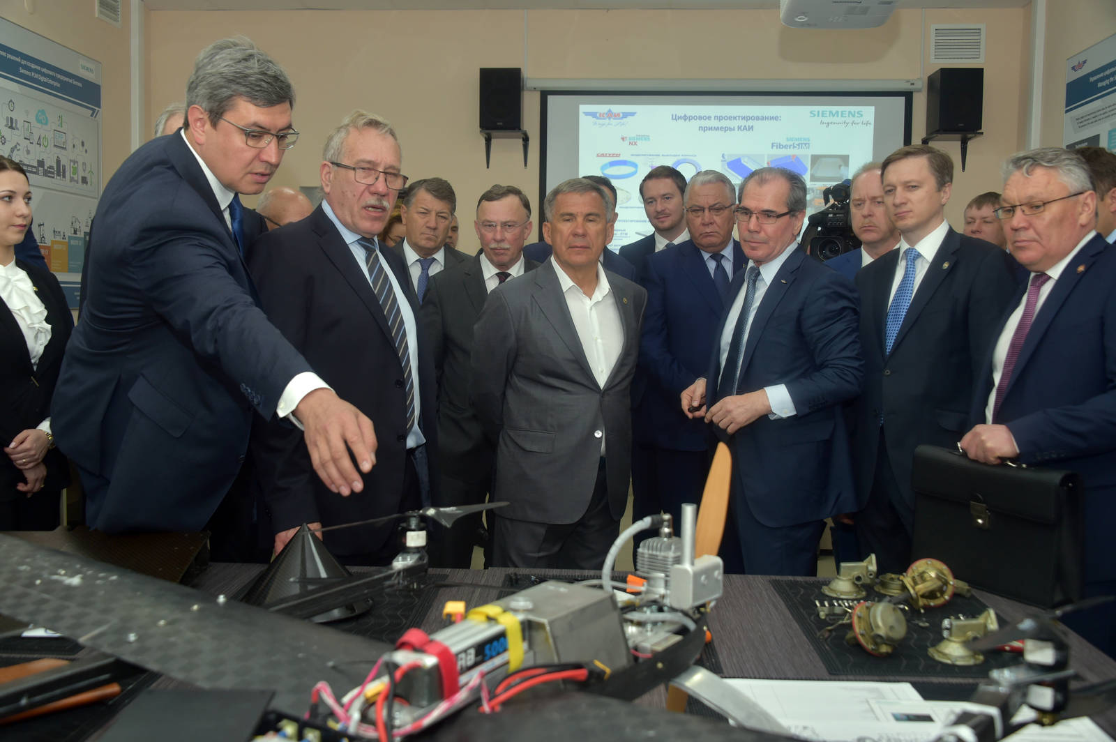 Tatarstaу Predisent Rustam Minnikhanov is taking part in the opening of the Siemens PLM Software competence centre (PLM laboratory) at the Kazan National Research Technical University named after A. N. Tupolev - KAI 04.06.2018