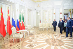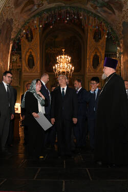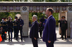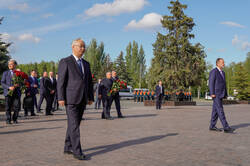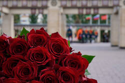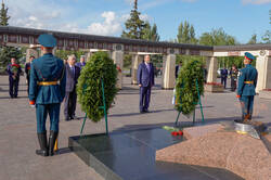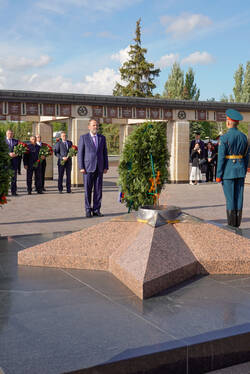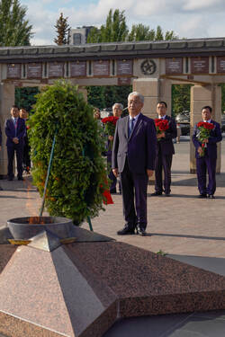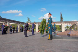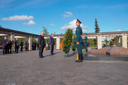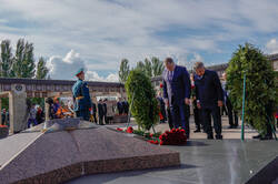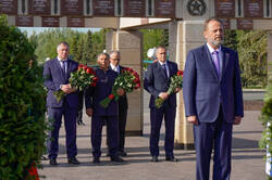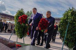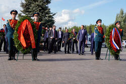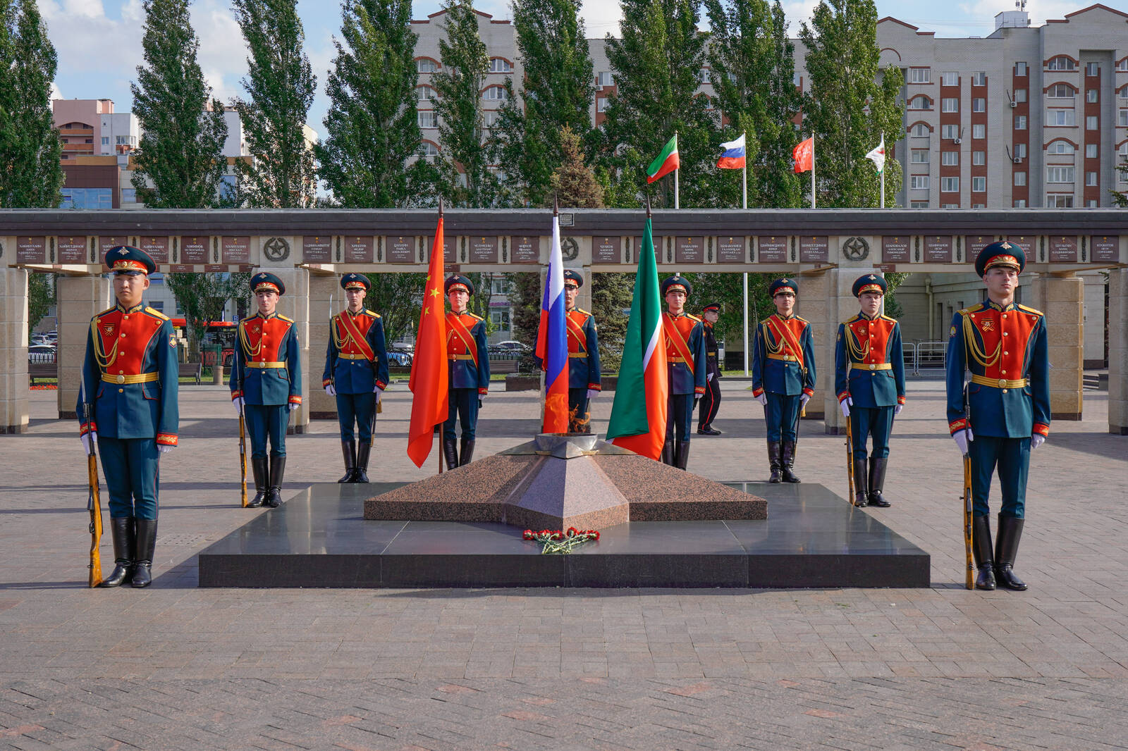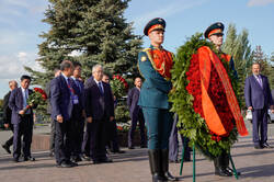 Пресс-службаФоторепортажиЦеремония возложения Вице-премьером Государственного Совета Китайской Народной Республики Чжан Гоцином и Раисом Республики Татарстан Р.Н.Миннихановым цветов к Вечному огню Колоннады Мемориала Славы
