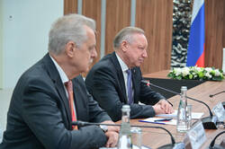 Пресс-службаФоторепортажиВстреча Раиса Татарстана Рустама Минниханова с Губернатором Санкт-Петербурга Александром Бегловым.