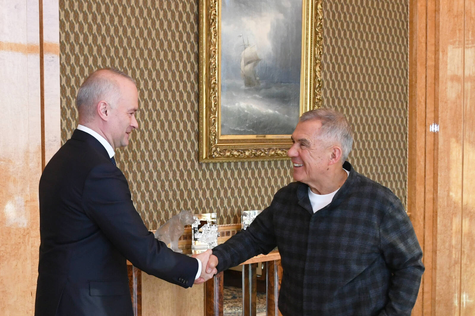 Пресс-службаФоторепортажиВстреча Раиса Татарстана Рустама Минниханова с генеральным директором ПАО «ОАК» Вадимом Бадехой.