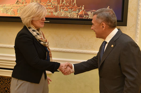 Пресс-службаФоторепортажиВстреча Президента Республики Татарстан Р.Н. Минниханова с Чрезвычайным и Полномочным Послом Латвийской Республики в Российской Федерации г-жой Астрой Курме
