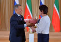 Пресс-службаФоторепортажиЦеремония вручения Президентом Республики Татарстан Р.Н. Миннихановым государственных наград Российской Федерации и Республики Татарстан, приуроченная к Празднику Весны и Труда