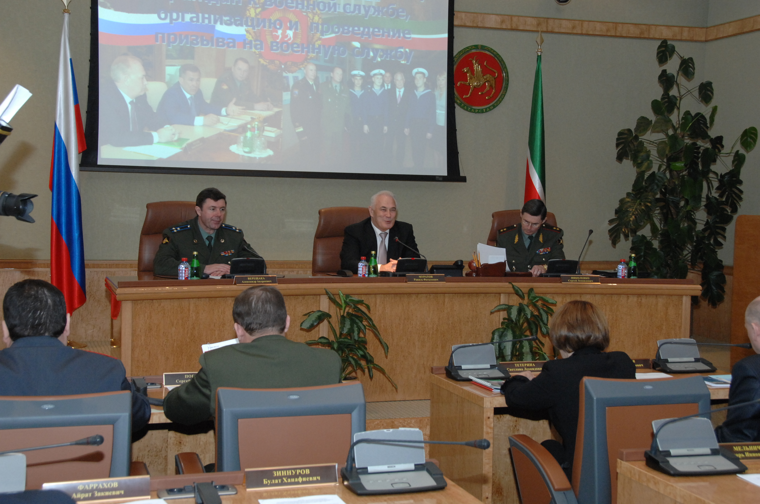 Пресс-службаФоторепортажиЗаслушивание членами Центральной конкурсной комиссии Министерства обороны Российской Федерации Всероссийского конкурса на лучшую подготовку граждан к военной службе, организацию и проведение призыва на военную службу в 2009 году руководителей министерств и ведомств по вопросам подготовки граждан к военной службе, организации и проведения призыва. Принимает участие и.о. Премьер-министра Республики Татарстан Р.Ф.Муратов.