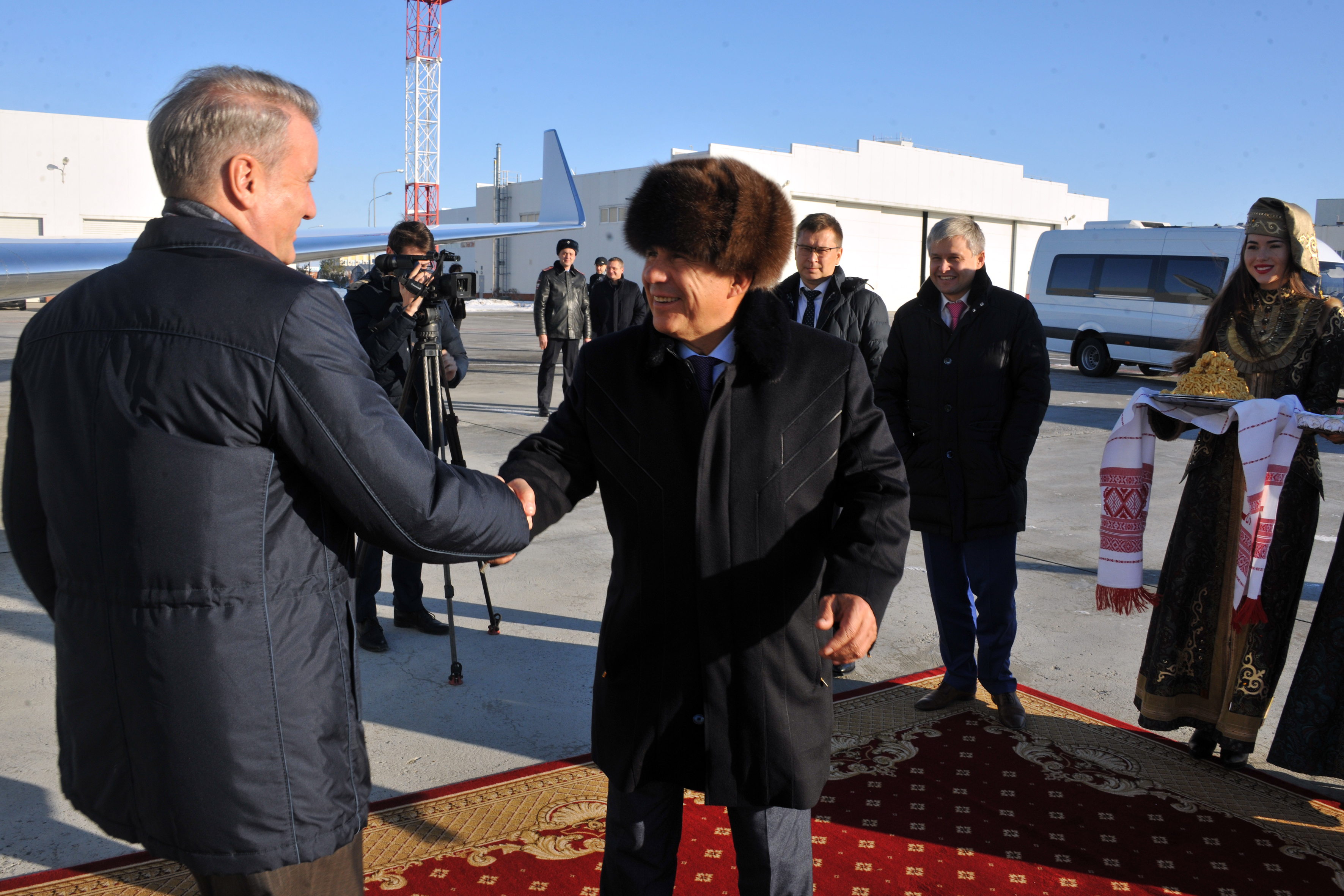 Пресс-службаФоторепортажиПрибытие в Республику Татарстан Председателя Правления ПАО "Сбербанк" Германа Оскаровича Грефа. Встречает Президент Республики Татарстан Р.Н. Минниханов.