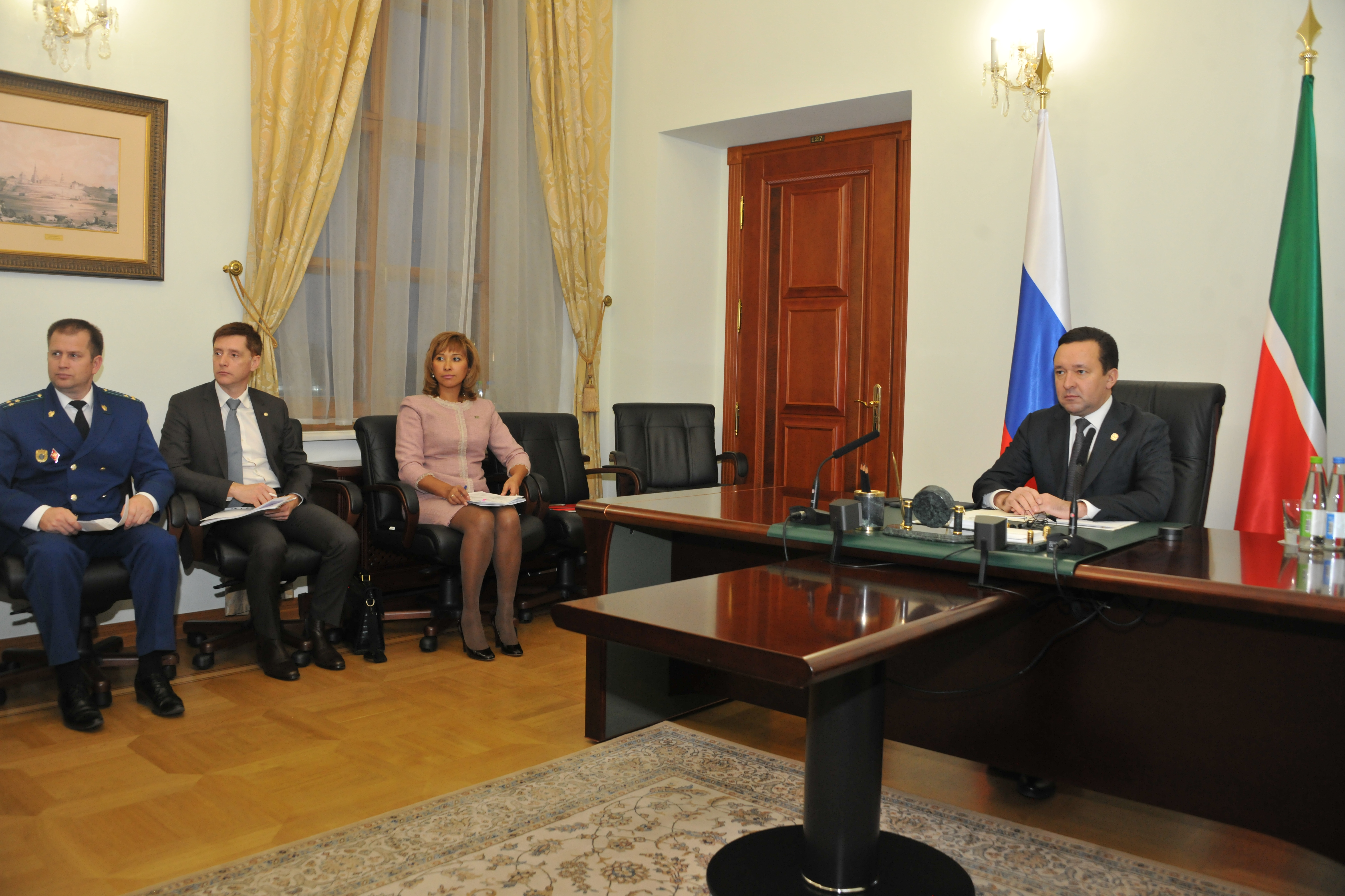 Пресс-службаФоторепортажиСовещание в режиме видеоконференции о ситуации с задолженностью по заработной плате. Проводит председатель Правительства Российской Федерации Дмитрий Анатольевич Медведев. Принимает участие Премьер-министр Республики Татарстан И.Ш.Халиков.