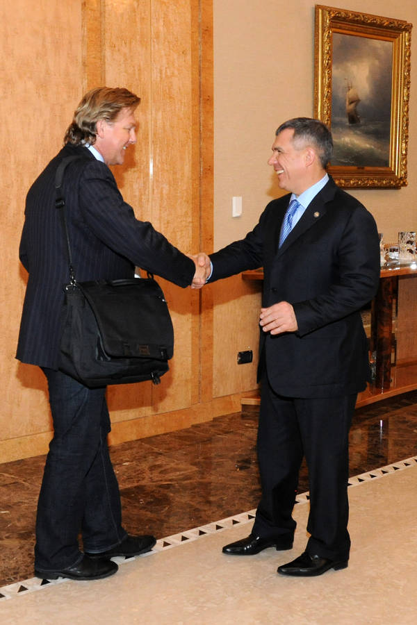 Пресс-службаФоторепортажиВстреча Президента Республики Татарстан Р.Н.Минниханова с президентом, креативным директором компании «Adore Creative» Рупертом Уэйнрайтом и президентом холдинга "Медиа Артс Групп" Олегом Львовичем Волкошом