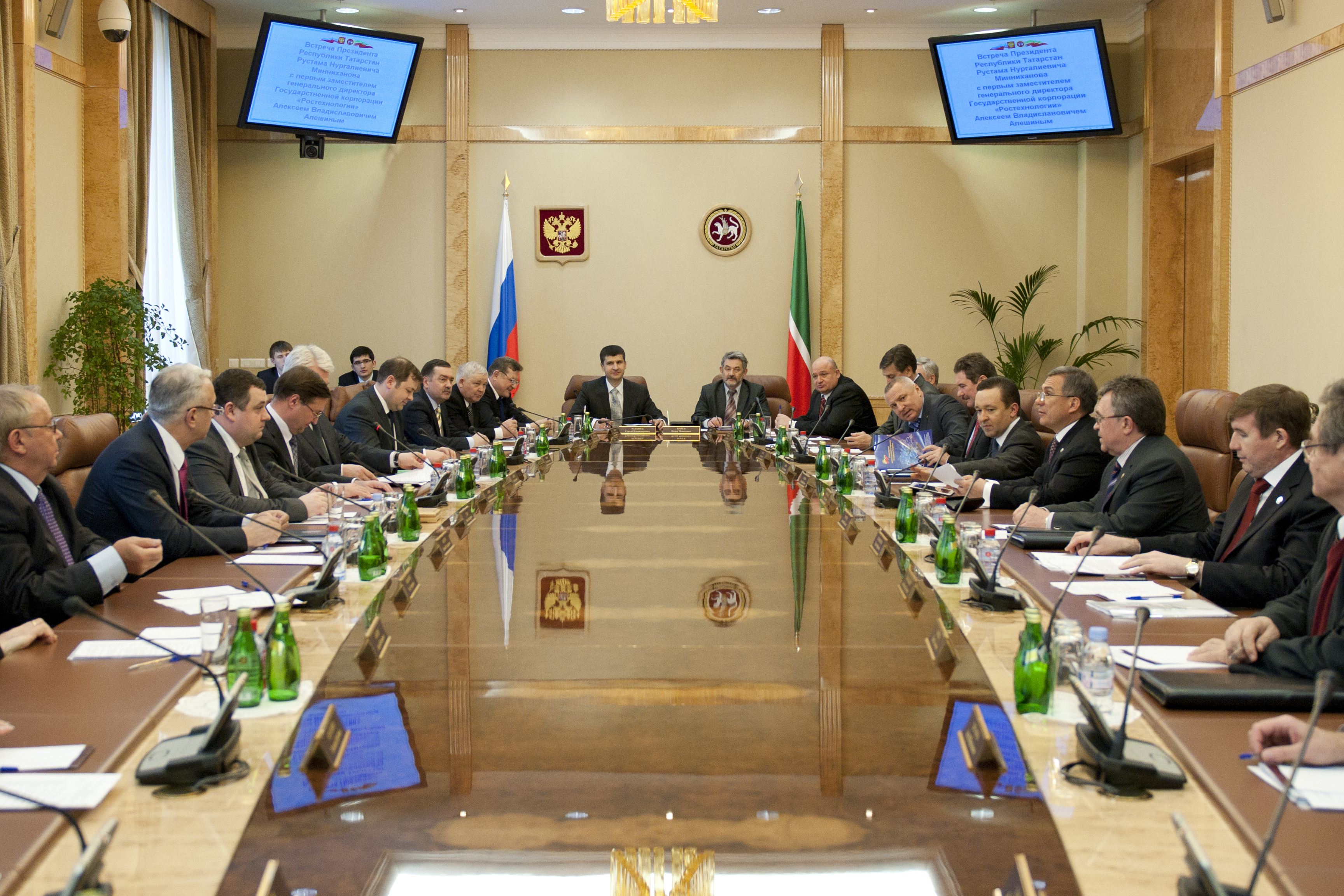 Пресс-службаФоторепортажиВстреча Президента Республики Татарстан Р.Н.Минниханова с первым заместителем генерального директора Государственной корпорации «Ростехнологии» Алексеем Владиславовичем Алешиным