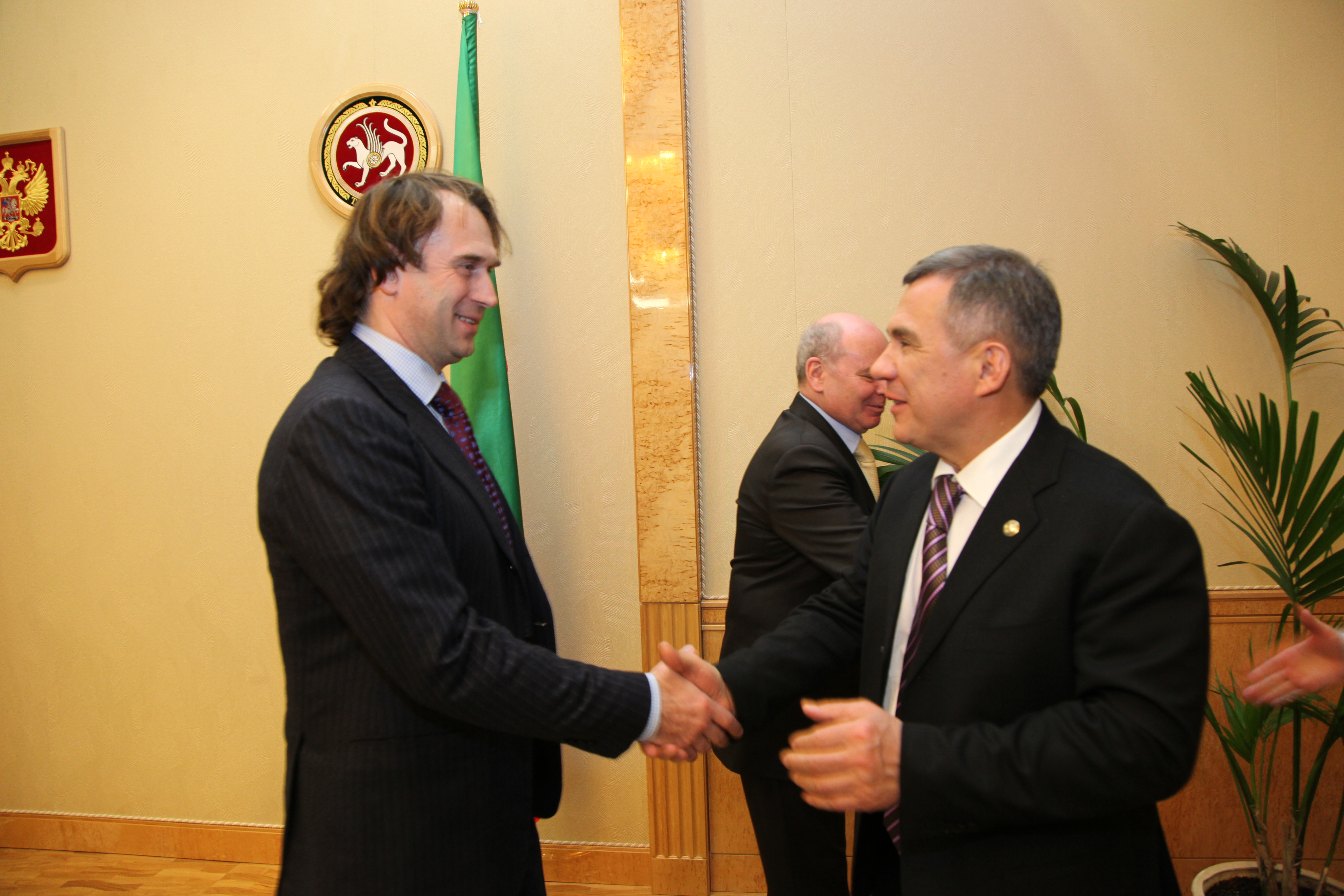Пресс-службаФоторепортажиВстреча Президента Республики Татарстан Р.Н.Минниханова с первым заместителем Председателя Комитета Совета Федерации по аграрно-продовольственной политике и природопользованию Сергеем Федоровичем Лисовским и Председателем совета директоров “FGN Capital” Александром Григорьевичем Халдеем