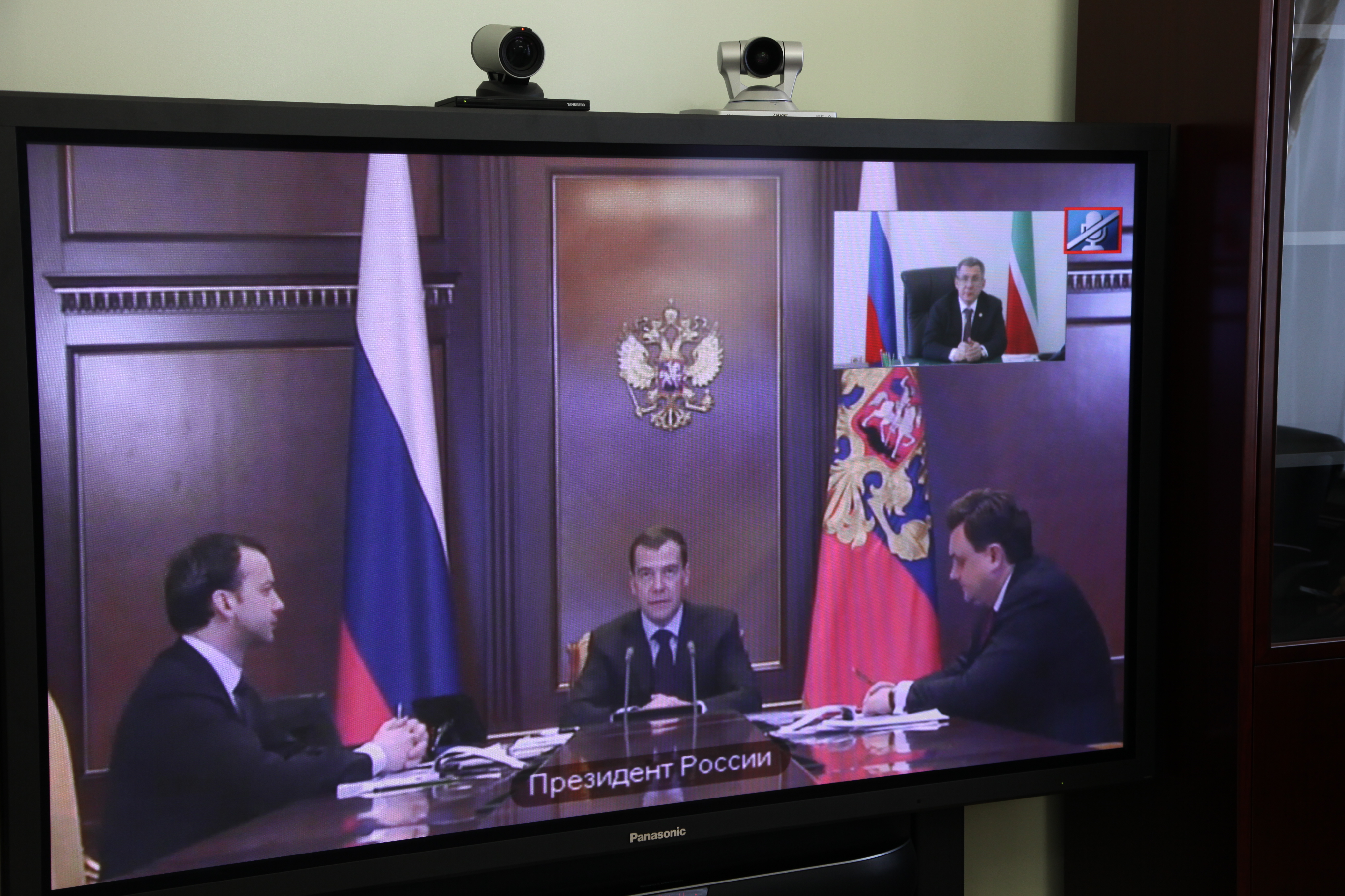 Пресс-службаФоторепортажиСовещание в режиме видеоконференции по вопросам исполнения поручений Президента Российской Федерации. Проводит Президент Российской Федерации Д.А.Медведев. Принимает участие Президент Республики Татарстан Р.Н.Минниханов.
