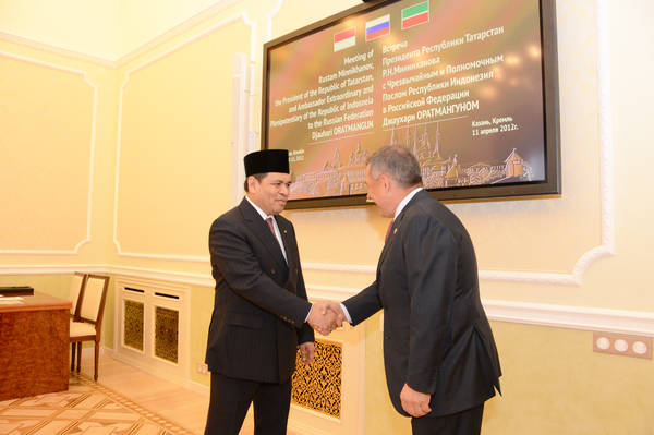 Пресс-службаФоторепортажиВстреча Президента Республики Татарстан Р.Н.Минниханова с Чрезвычайным и Полномочным Послом Республики Индонезия в Российской Федерации г-ном Джаухари Оратмангуном