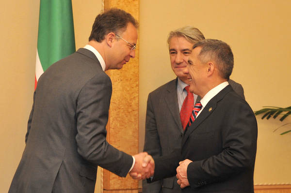 Пресс-службаФоторепортажиВстреча Президента Республики Татарстан Р.Н.Минниханова с Председателем правления концерна «Винербергер АГ» доктором Хаймо Шойхом