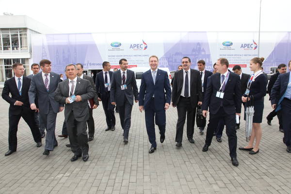 Пресс-службаФоторепортажиВстреча министров торговли экономик Азиатско-тихоокеанского форума экономическогосотрудничества (АТЭС).Принимают участие Первый заместитель Председателя Правительства Российской Федерации, Председатель Организационного комитета по подготовке и проведению XXVII Всемирной летней Универсиады 2013 года в г. Казани И.И.Шувалов и Президент Республики Татарстан Р.Н.Минниханов.
