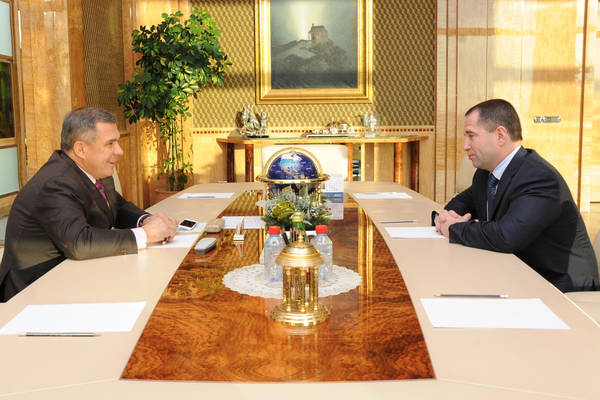 Пресс-службаФоторепортажиБеседа полномочного представителя Президента Российской Федерации в Приволжском федеральном округе Михаила Викторовича Бабича с Президентом Республики Татарстан Р.Н.Миннихановым.