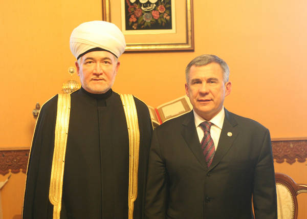 Пресс-службаФоторепортажиВстреча Президента Республики Татарстан Рустама Минниханова с председателем СМР, муфтием шейхом Равилем Гайнутдином.