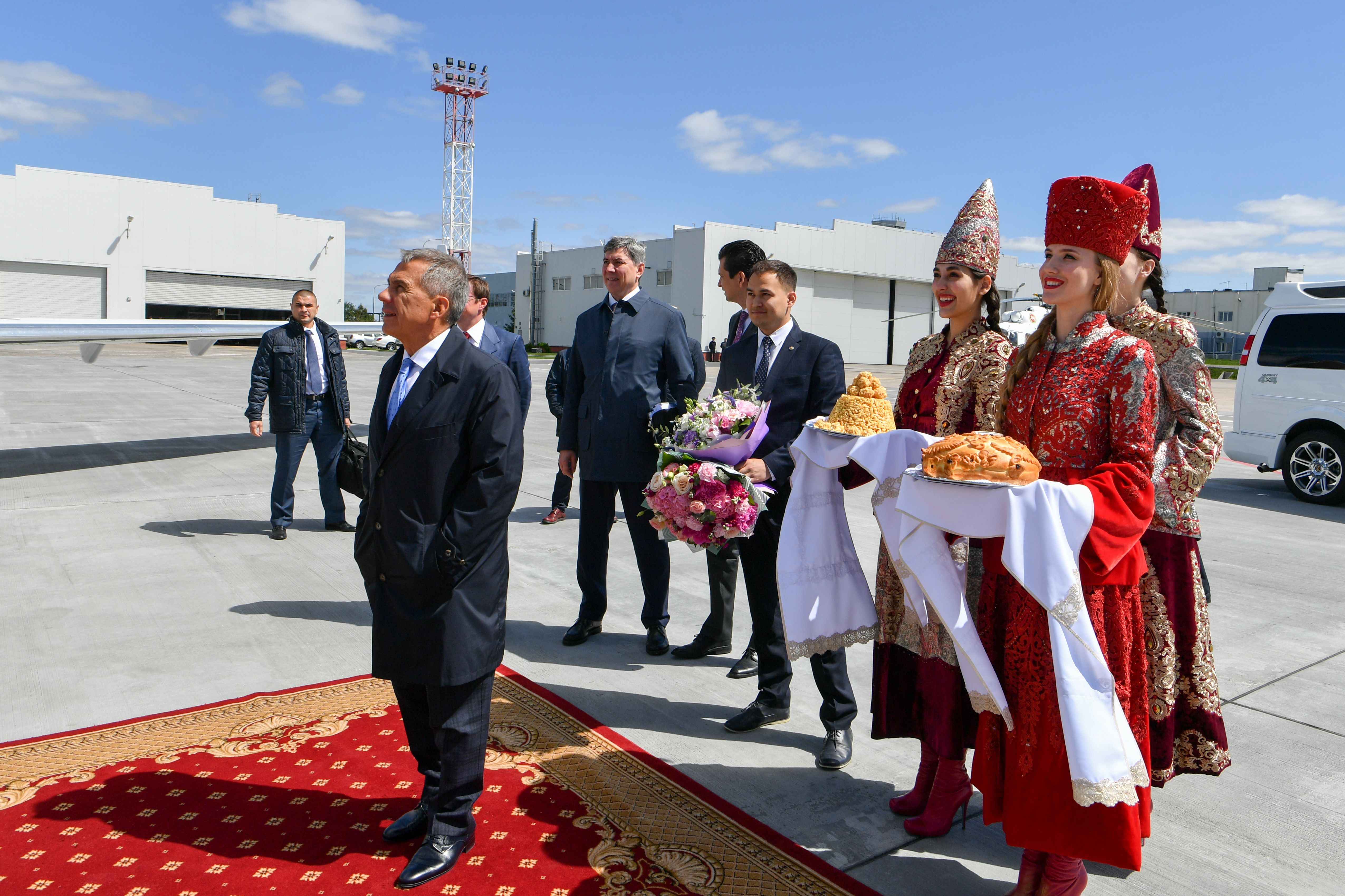 Пресс-службаФоторепортажиПрибытие в Республику Татарстан заместителя Председателя Правительства России М.А.Акимова. Встречает Президент Республики Татарстан Р.Н.Минниханов.