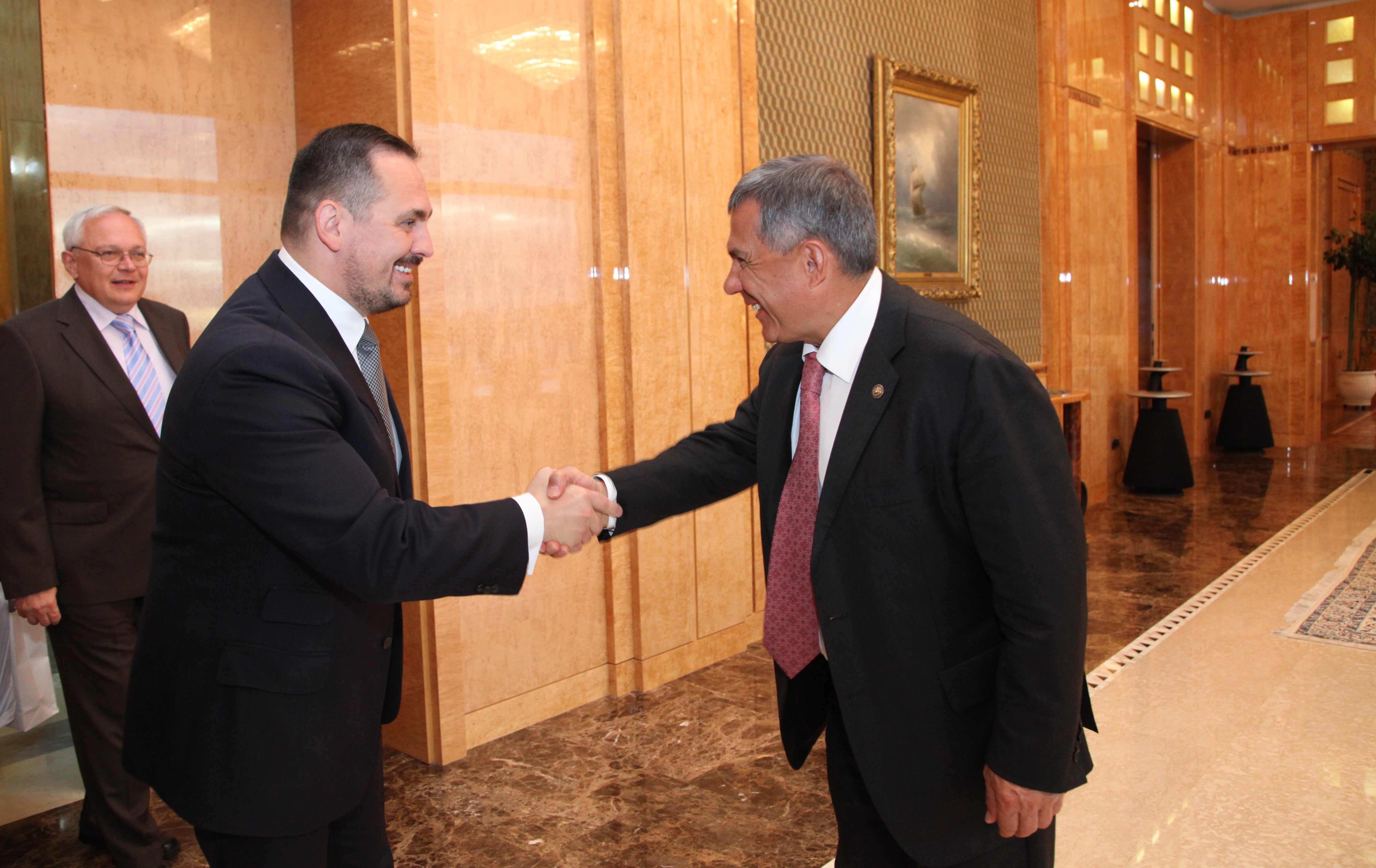 Пресс-службаФоторепортажиВстреча Президента Республики Татарстан Р.Н.Минниханова с делегацией Боршод-Абауй-Земплен Венгрии во главе с Председателем Законодательного Собрания области доктором Роландом Менди