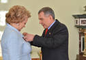 Пресс-службаФоторепортажиВручение ордена «За заслуги перед Республикой Татарстан» генеральному директору ООО «Бахетле» М.Х.Латыповой. Принимает участие Президент РТ Р.Н.Минниханов.