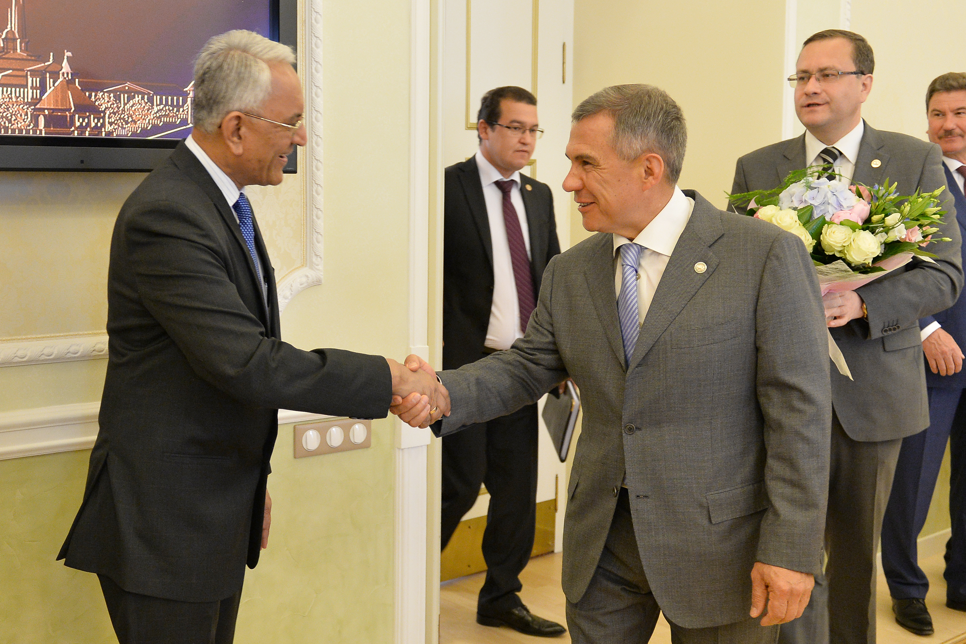 Пресс-службаФоторепортажиВстреча Президента Республики Татарстан Р.Н. Минниханова с Чрезвычайным и Полномочным Послом Республики Индии в Российской Федерации г-ном Пунди Сринивасаном Рагхаваном