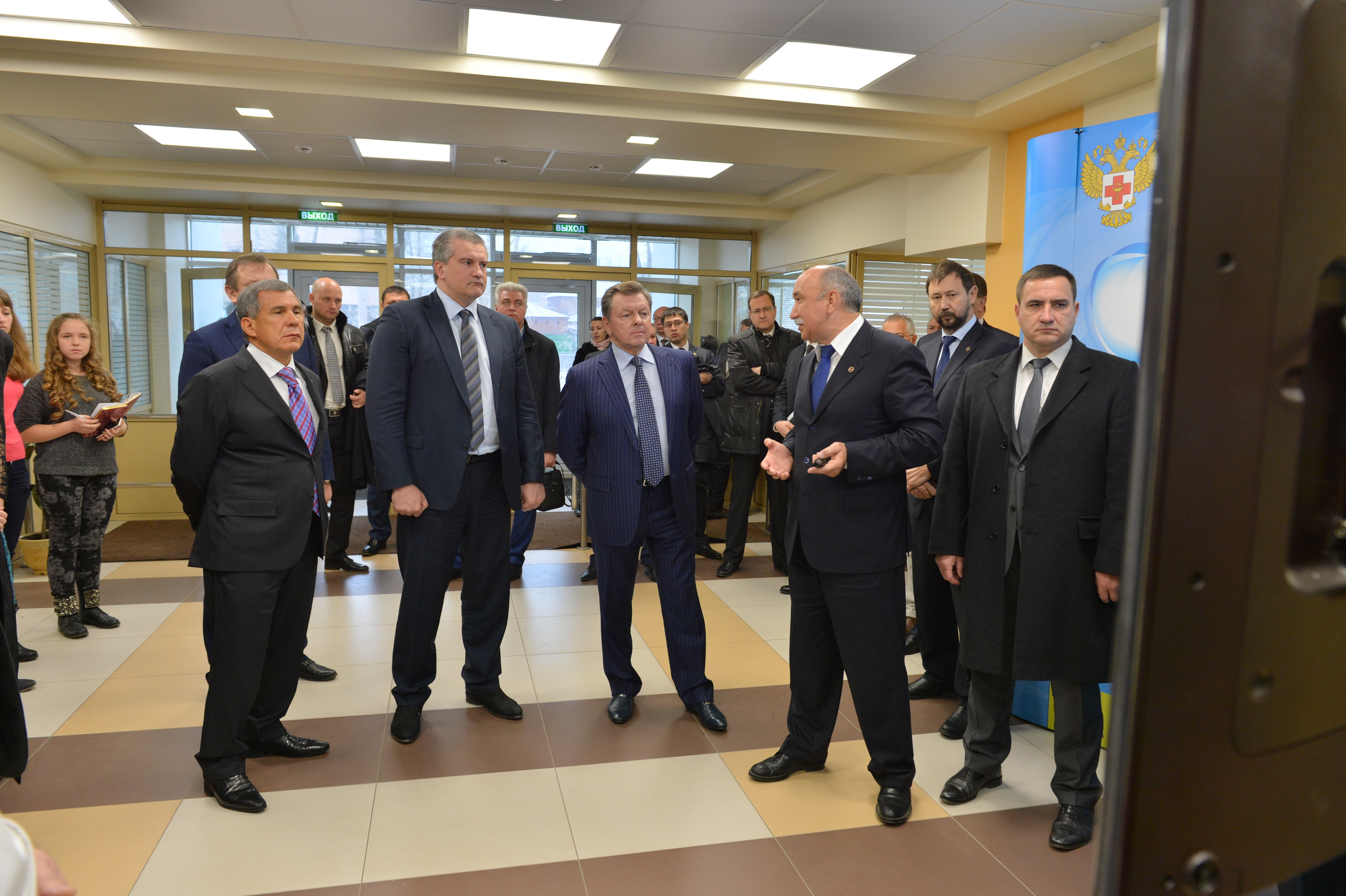 Пресс-службаФоторепортажиПосещение Полномочным представителем Президента РФ в Крымском федеральном округе О.Е.Белавенцевым, Главой Республики Крым С.В.Аксеновым и Президентом РТ Р.Н.Миннихановым нового Учебно-лабораторного кампуса Института фундаментальной медицины и биологии и Регионального инжинирингового центра медицинских симуляторов "Центр Мединицинской Науки"