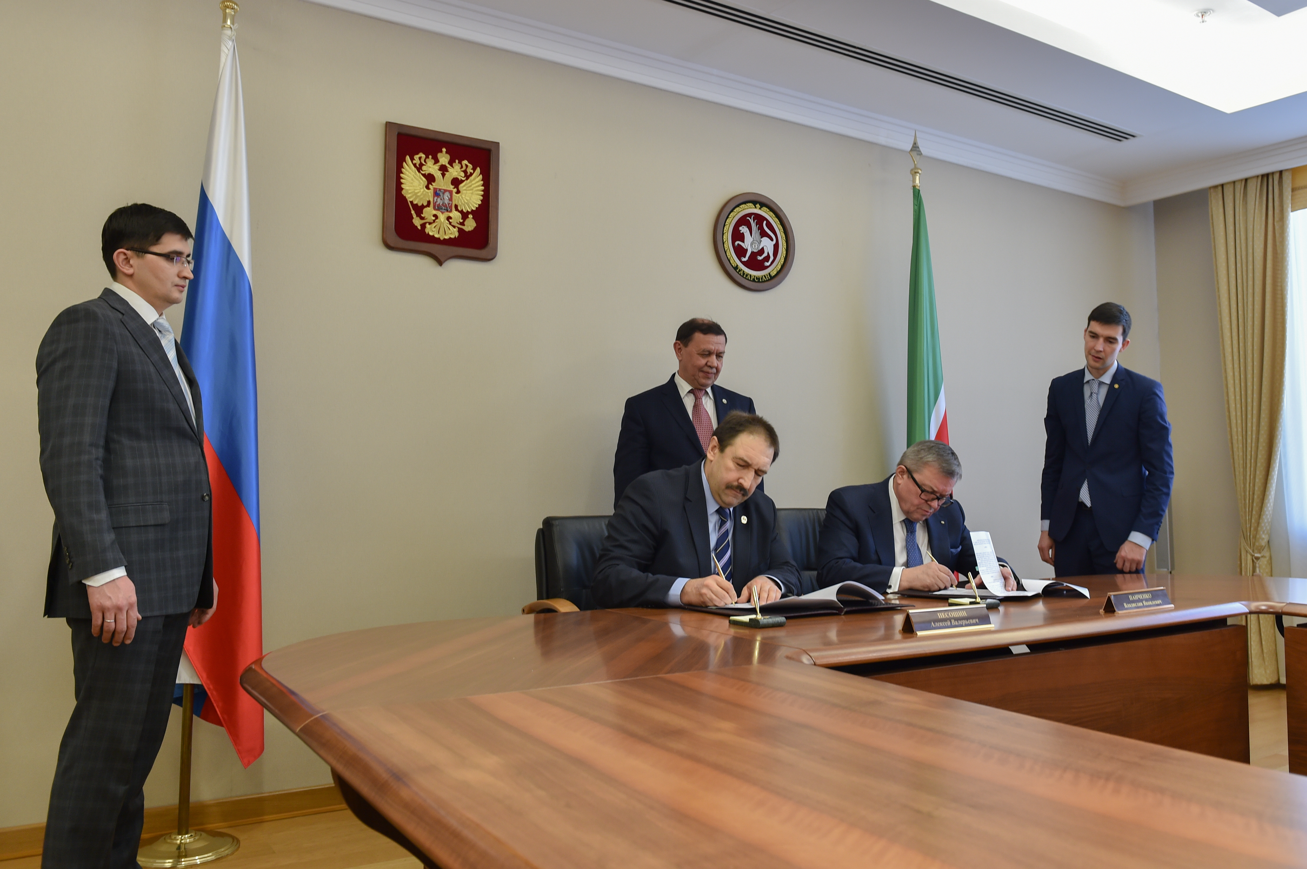 Пресс-службаФоторепортажиПодписание соглашения между Российским фондом фундаментальных исследований и Правительством Республики Татарстан «О региональных конкурсах проектов фундаментальных научных исследований на 2015-2019 годы». Принимает участие исполняющий обязанности Премьер-министра Республики Татарстан А.В.Песошин.
