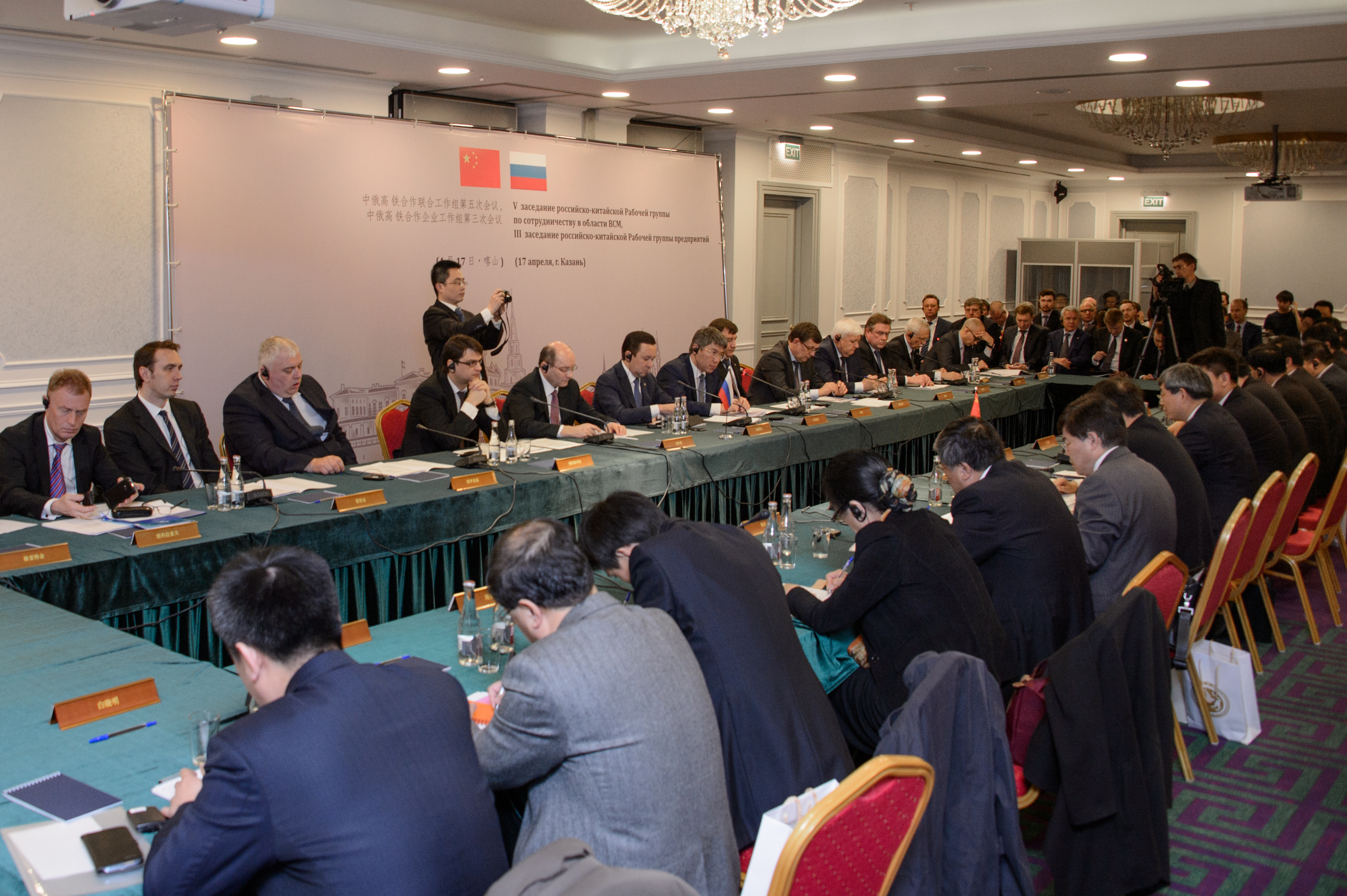 Пресс-службаФоторепортажиПятое заседание российско-китайской рабочей группы по сотрудничеству в области реализации проекта строительства высокоскоростной железнодорожной магистрали. Принимают участие Первый вице-президент ОАО «РЖД» А.С.Мишарин, Премьер-министр Республики Татарстан И.Ш.Халиков.