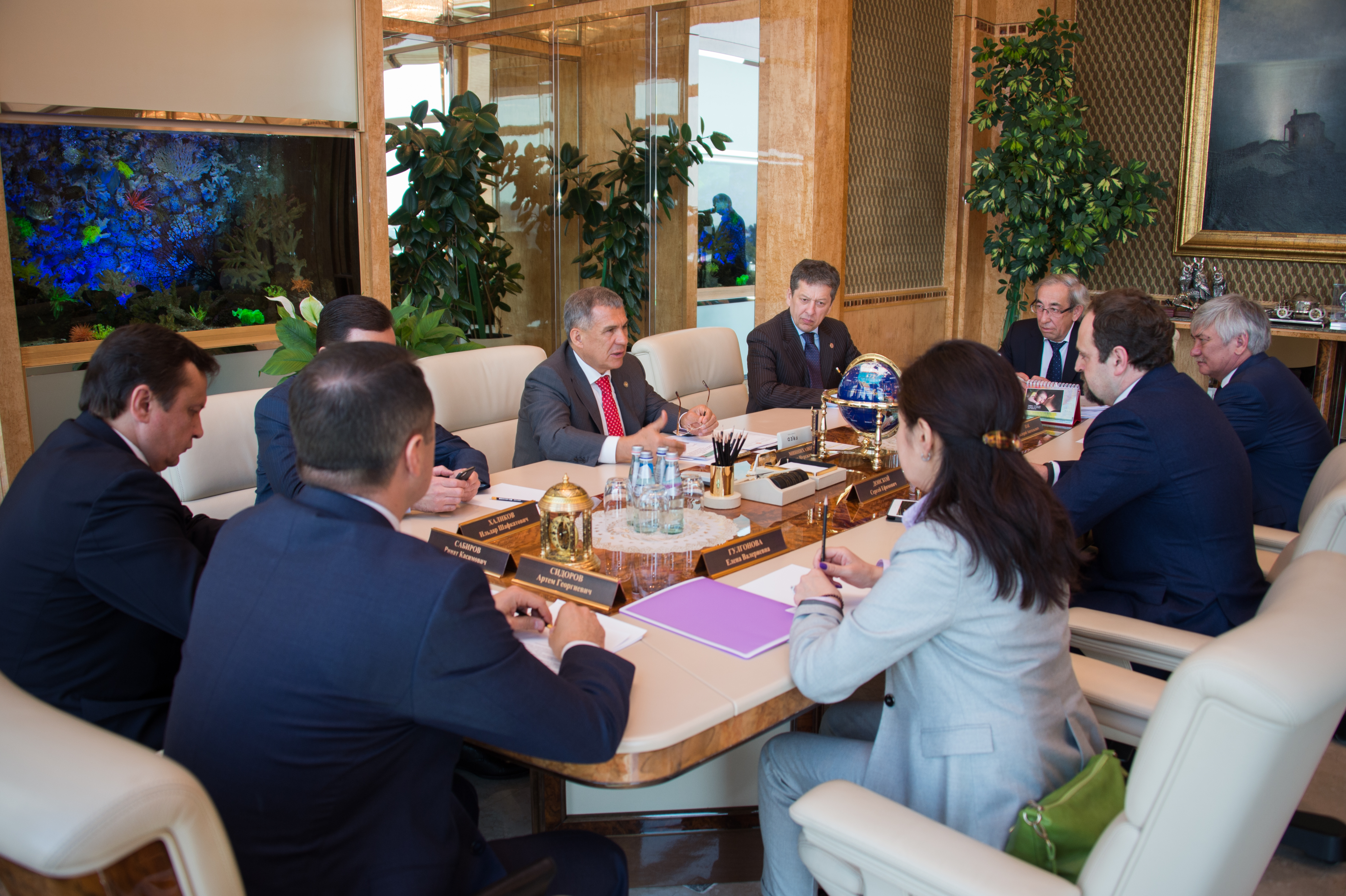 Пресс-службаФоторепортажиВстреча временно исполняющего обязанности Президента Республики Татарстан Р.Н.Минниханова с Министром природных ресурсов и экологии Российской Федерации Сергеем Ефимовичем Донским. Подписание соглашения между Министерство природных ресурсов и экологии Российской Федерации и Республикой Татарстан о создании полигонов по разработке и внедрению новейших технологий поиска, разведки, разработки и освоении трудноизвлекаемых запасов, ресурсов углеводородного сырья.
