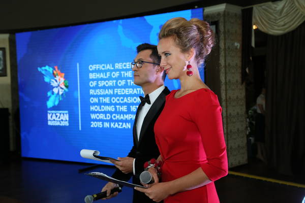 Пресс-службаФоторепортажиОфициальный прием от имени Министра спорта Российской Федерации Виталия Леонтьевича Мутко по случаю проведения XVI чемпионата мира по водным видам спорта в г. Казани. Принимает участие временно исполняющий обязанности Президента Республики Татарстан Р.Н. Минниханов.