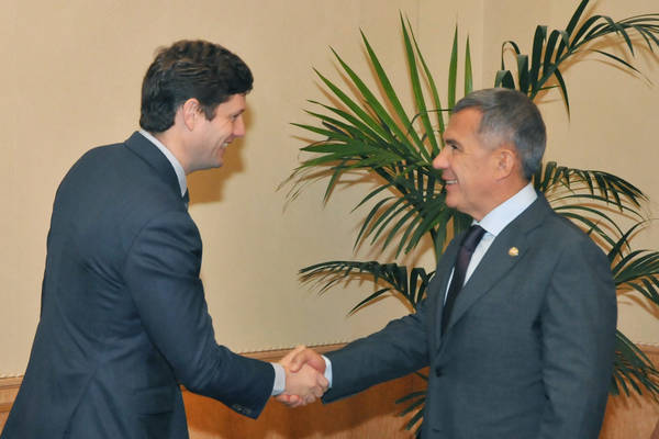 Пресс-службаФоторепортажиВстреча Президента Республики Татарстан Р.Н. Минниханова с Генеральным директором компании «Сен-Гобен СНГ» (Франция) Гонзагом Арну де Пире