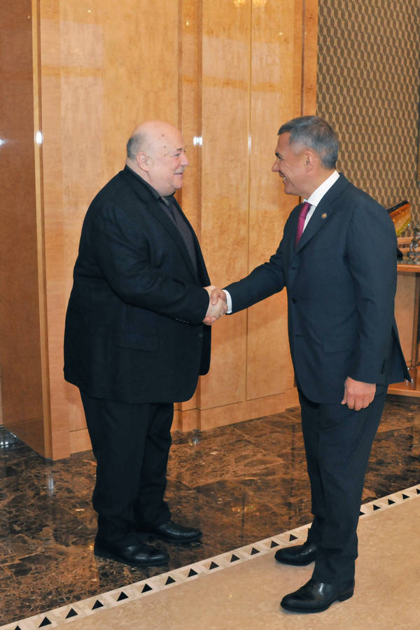 Пресс-службаФоторепортажиВстреча Президента Республики Татарстан Р.Н. Минниханова с Председателем союза театральных деятелей Российской Федерации, народным артистом РСФСР, актером, режиссером Александром Александровичем Калягиным