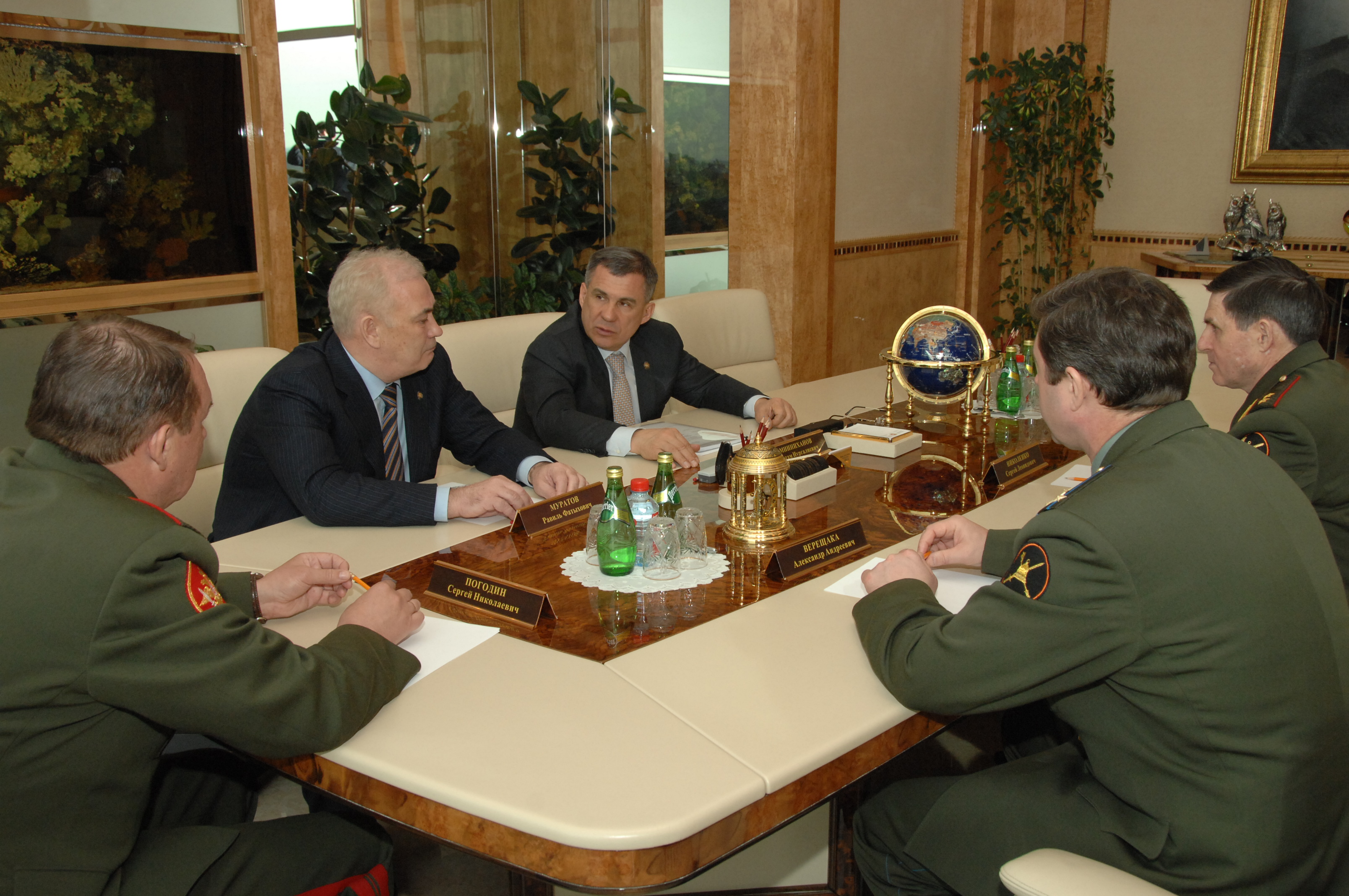 Пресс-службаФоторепортажиВстреча Премьер-министра Республики Татарстан Р.Н.Минниханова с председателем Центральной конкурсной комиссии, начальником Главного организационно-мобилизационного управления Генерального штаба Вооруженных Сил Российской Федерации генерал-лейтенантом Сергеем Леонидовичем Николенко