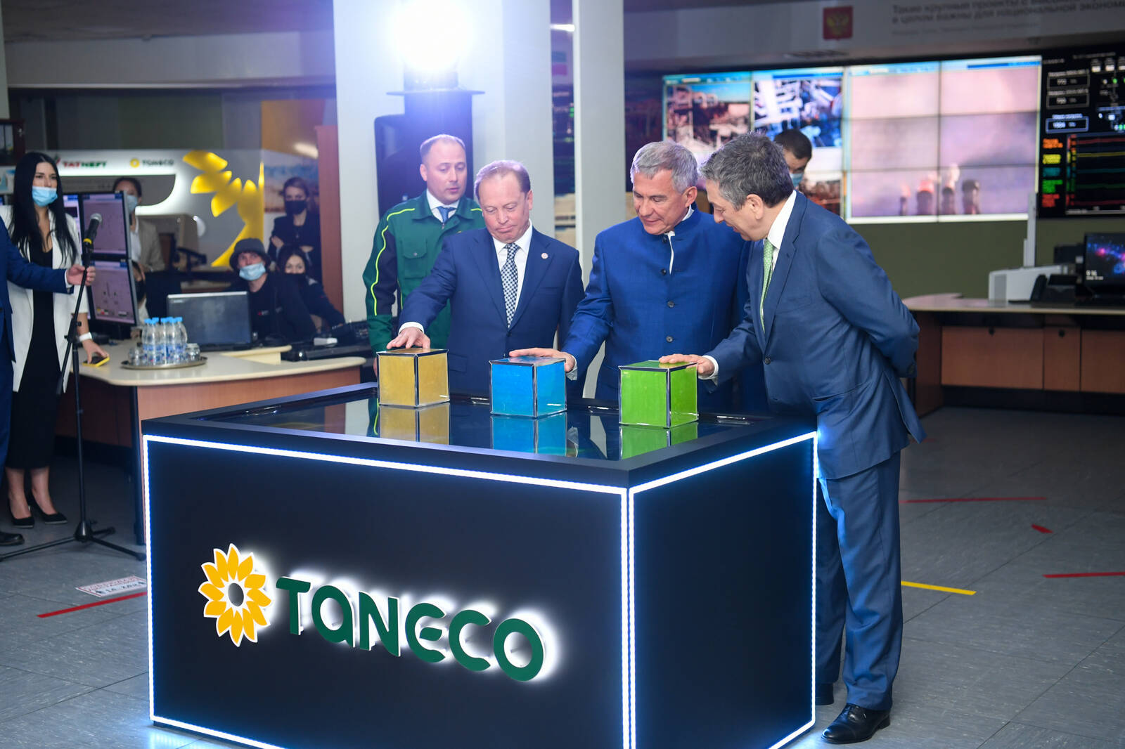 Торжественная церемония запуска в комплексное опробование установок производства водорода, каталитического крекинга и производства смазочных материалов. Принимает участие Президент Республики Татарстан Р.Н. Минниханов.