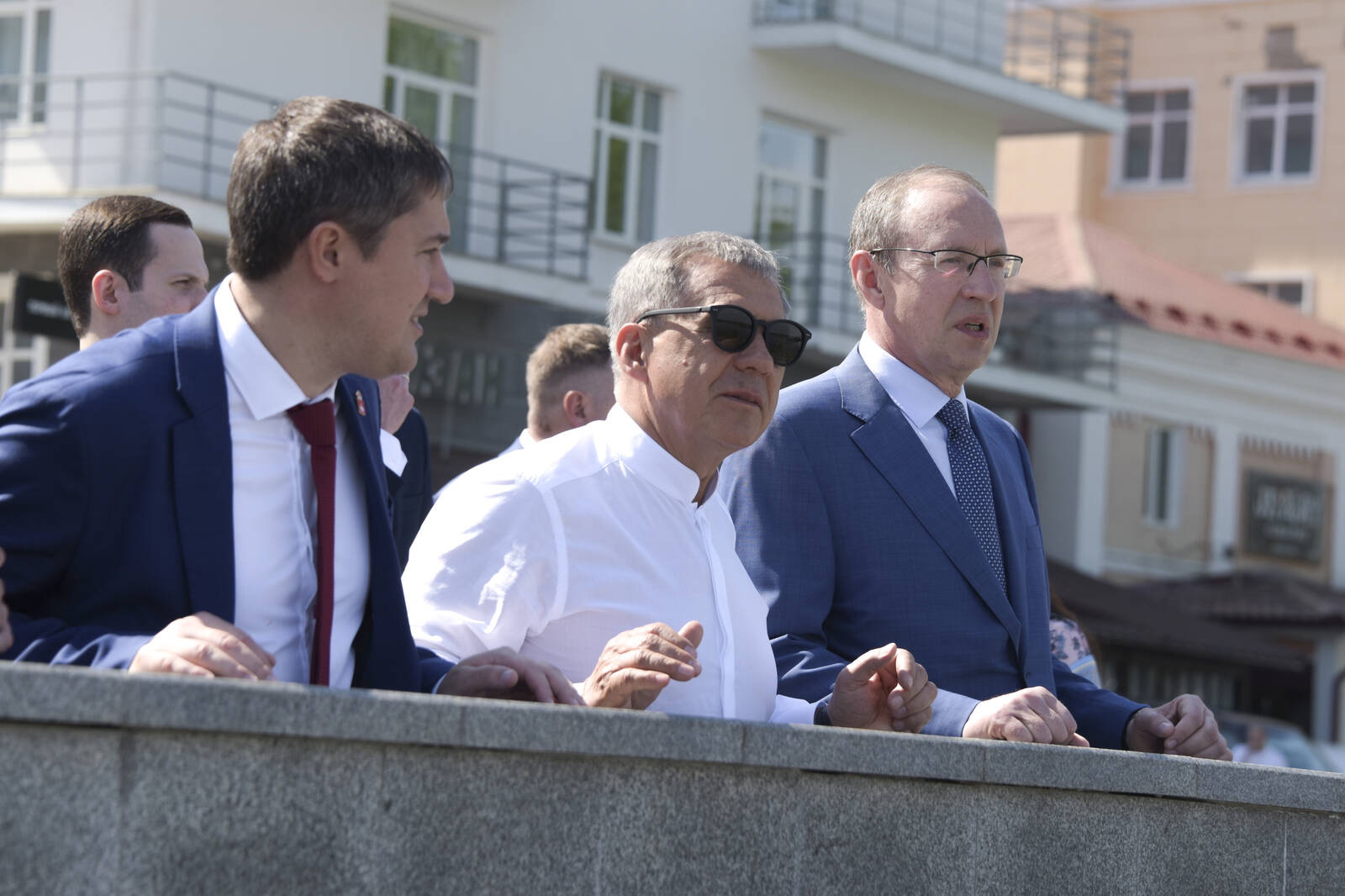 Осмотр Президентом Татарстана Рустамом Миннихановым набережной Камы в Перми.