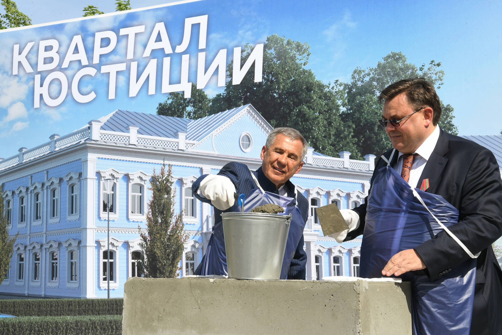 Закладка первого камня строительства "Квартала юстиции". Принимают участие Министр юстиции Российской Федерации К.А. Чуйченко и Президент Республики Татарстан Р.Н. Минниханов.