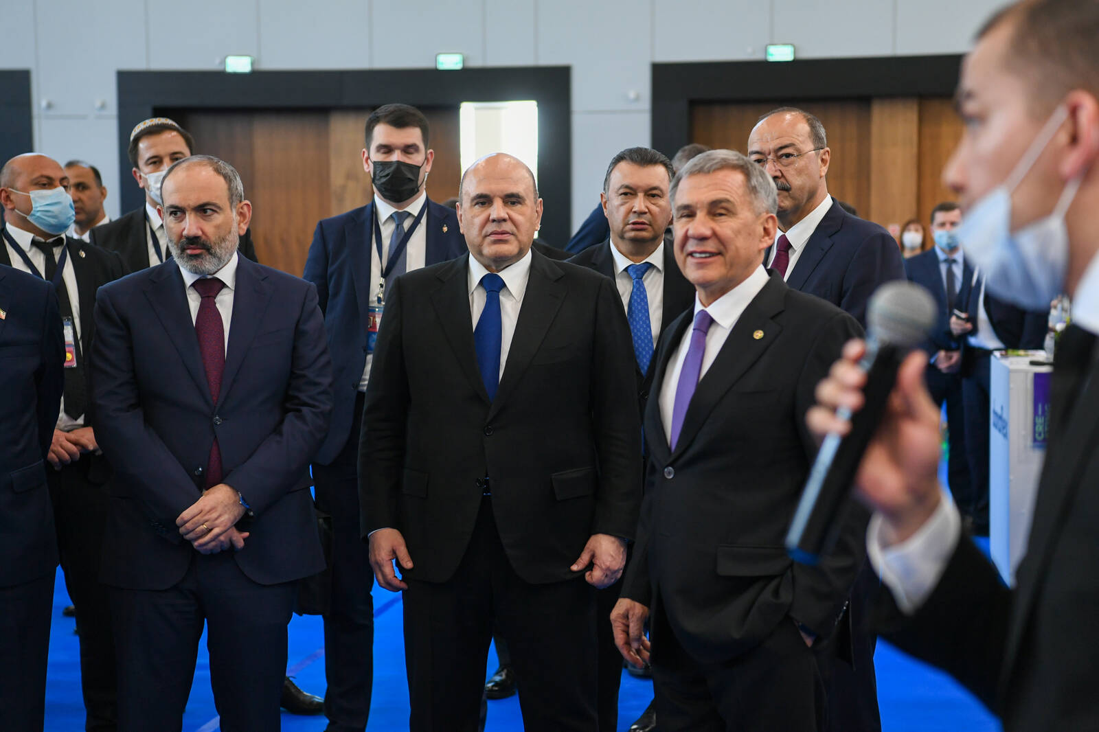 Посещение Премьер-министрами стран ЕАЭС выставочного центра «Казань Экспо». Сопровождает Президент Республики Татарстан Рустам Минниханов.