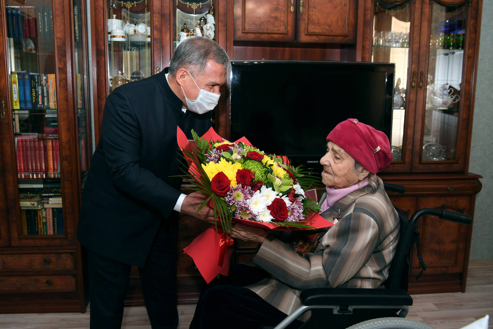 Чествование Президентом Республики Татарстан Р.Н. Миннихановым ветерана Великой Отечественной войны Самры Сабировны Бикмеевой по случаю 100-летнего юбилея