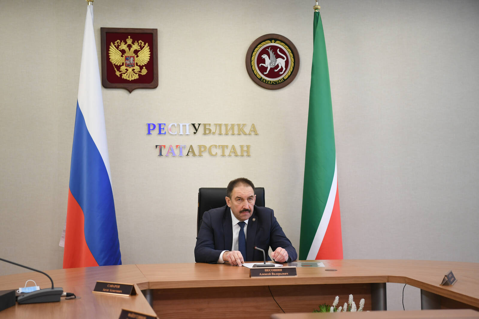Совещание в режиме видеоконференции с главами субъектов Российской Федерации и полномочными представителями Президента Российской Федерациив федеральных округах. Проводит Заместитель Председателя Правительства Российской Федерации Дмитрий Николаевич Чернышенко.Принимает участие Премьер-министр Республики Татарстан А.В.Песошин.