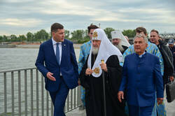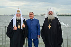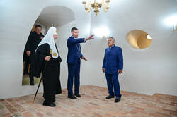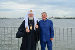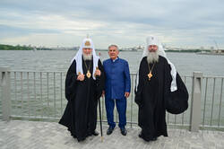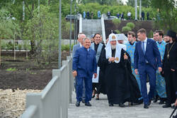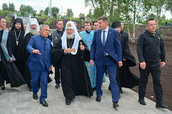 Рөстәм Миңнеханов һәм Патриарх Кирилл һәлак булган сугышчылар һәйкәл-гыйбадәтханәсенә бардылар