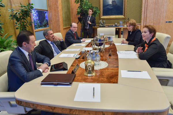 Татарстан Республикасы Президенты Р.Н.Миңнехановның Россия Федерациясе икътисадый үсеш министры урынбасары - Дәүләт мөлкәтенә идарә буенча федераль агентлык җитәкчесе башлыгы О.К.Дергунова белән очрашуы 13.01.2015