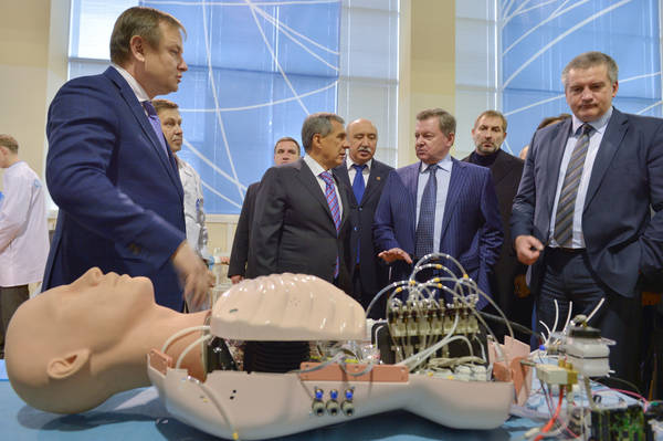 Татарстан Республикасы Президенты Р.Н. Миңнехановның Кырым федераль округында Россия Федерациясе Тулы вәкаләтле вәкиле Олег Евгеньевич Белавенцевның һәм Кырым Республикасы Башлыгы Сергей Валерьевич Аксёновның Фундаменталь медицина һәм биология институтының Уку-лаборатория кампусында һәм "Медицина фәне үзәге" медицина симуляторларының региональ инжиниринг үзәгендә булулары. 15.11.2014