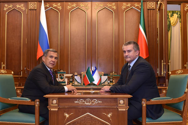 Татарстан Республикасы Президенты Р.Н. Миңнехановның Кырым федераль округында Россия Федерациясе Тулы вәкаләтле вәкиле Олег Евгеньевич Белавенцев һәм Кырым Республикасы Башлыгы, Кырым Республикасы Министрлар советы Рәисе Сергей Валерьевич Аксёнов белән очрашуы 15.11.2014