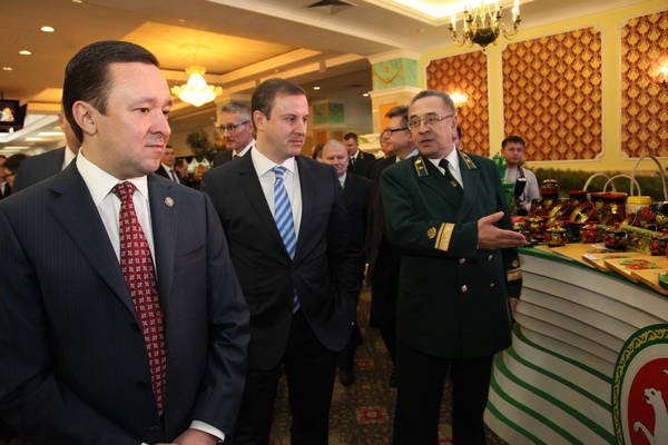 Татарстан Республикасы Президенты Р.Н. Миңнехановның Кырым федераль округында Россия Федерациясе Тулы вәкаләтле вәкиле Олег Евгеньевич Белавенцевның һәм Кырым Республикасы Башлыгы Сергей Валерьевич Аксёновның "Казан" агросәнәгать паркында булулары 15.11.2014