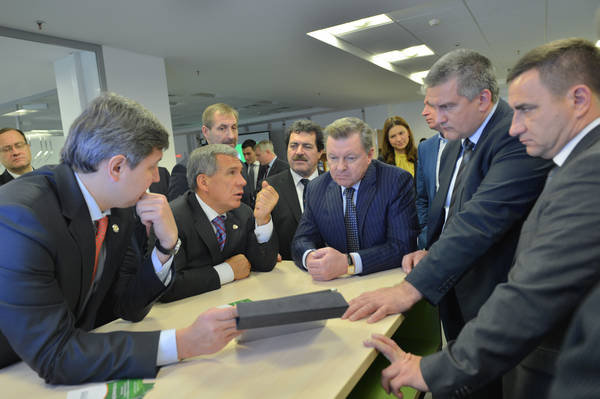 Татарстан Республикасы Президенты Р.Н. Миңнехановның Кырым федераль округында Россия Федерациясе Тулы вәкаләтле вәкиле Олег Евгеньевич Белавенцевның һәм Кырым Республикасы Башлыгы Сергей Валерьевич Аксёновның "IT-парк" югары технологияләр өлкәсендәге технопаркта булулары 15.11.2014