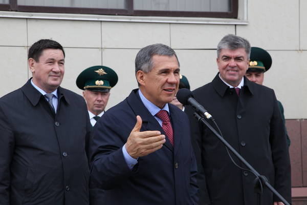 Җитәкче-урманчыларга автомоблильләрдән ачкыч тапшыру тантанасы. Татарстан Республикасы Президенты Р.Н.Миңнеханов катнаша. 19.09.2014