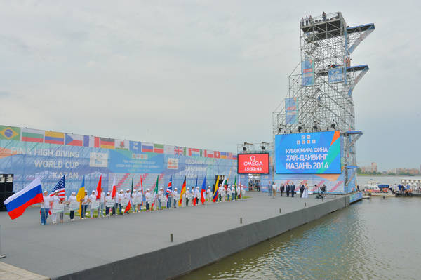 Хай-дайвинг буенча дөнья кубогын ачу тантанасы. Россия Федерациясе Президенты ярдәмчесе Игорь Евгеньевич Левитин һәм Татарстан Республикасы Премьер-министры И.Ш. Халиков катнаша. 08.08.2014