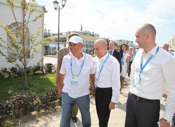 Татарстан Республикасы Президенты Р.Н.Миңнеханов һәм Халыкара йөзү федерациясе җитәкчелегенең (FINA) Казан елгасы ярын караулары 07.08.2014