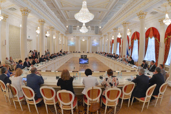 "Россия китап берлегенең регионнар клубы" проект командасы утырышы. Россия китап берлеге президенты Сергей Вадимович Степашин уздыра. Татарстан Республикасы Премьер-министры И.Ш. Халиков катнаша. 01.07.2014